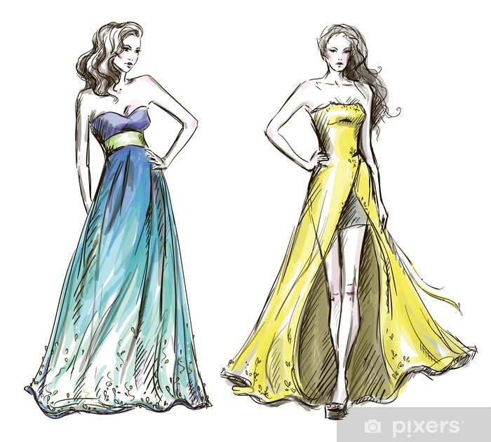 700x631 fashion illustration long dress catwalk wall mural pixers