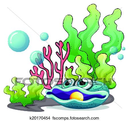 450x422 Clipart Of Corals, Seaweeds And A Clamb Under The Sea K20170454