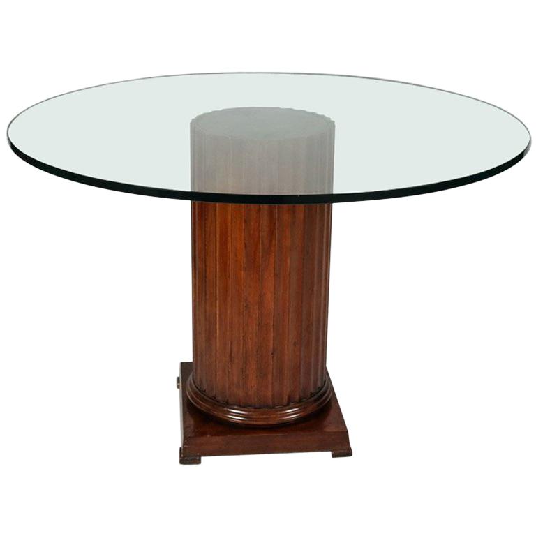 768x768 classical white washed corinthian column glass top dining table