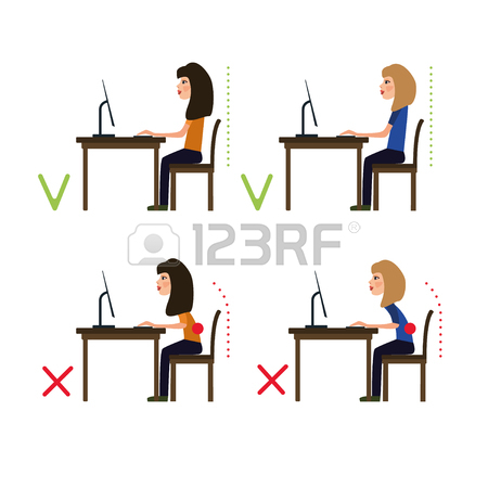 450x450 Correct Posture While Working At The Computer. Vector Illustration