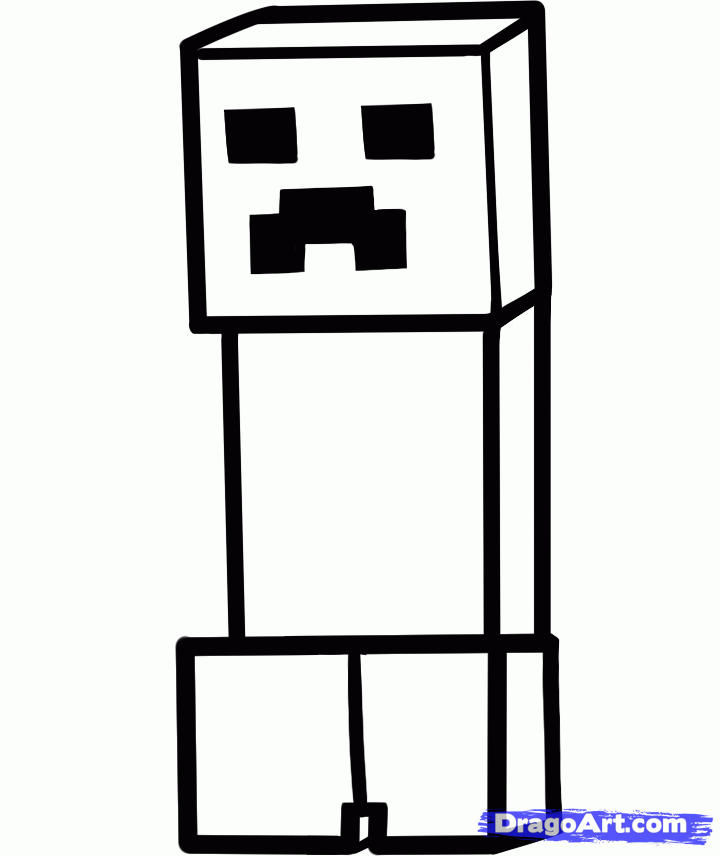 735x1066 draw a realistic minecraft creeper, step