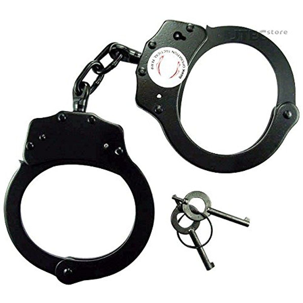 1000x1000 Black Steel Double Lock Real Hand Cuffs Police Handcuffs With Keys