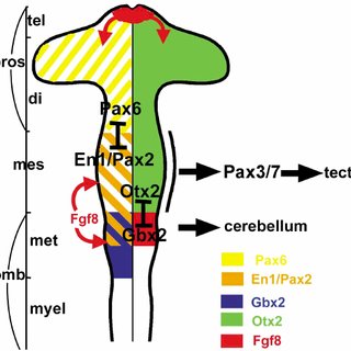 320x320 schematic drawing of the brain vesicles defining mesencephalon