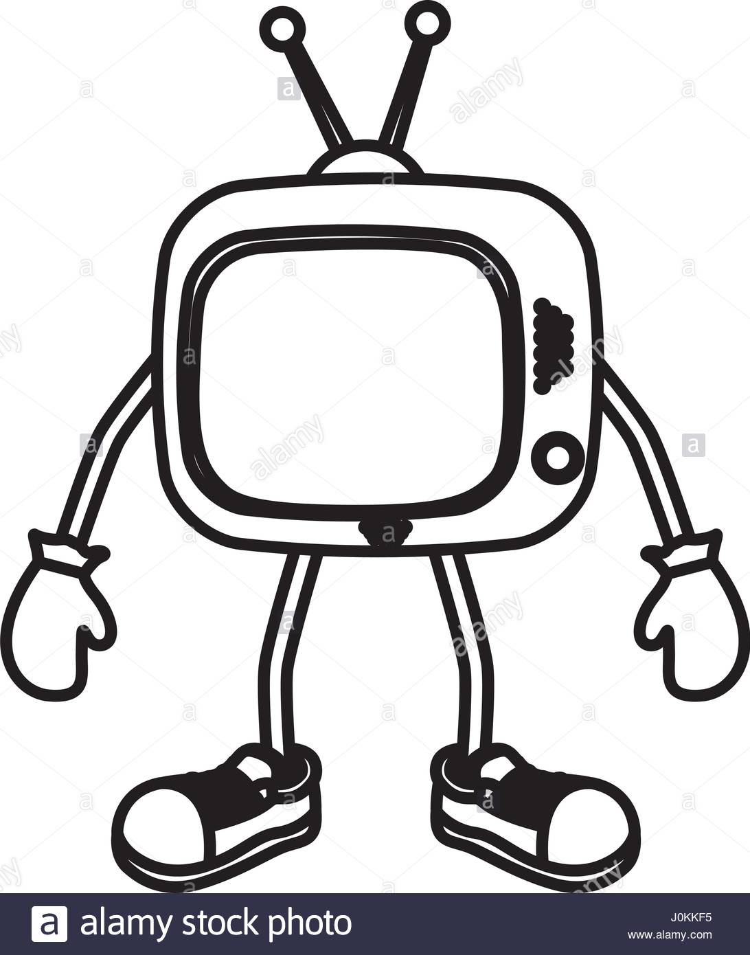 1092x1390 Silhouette Of Antique Tv Device With Hands And Legs Stock Vector