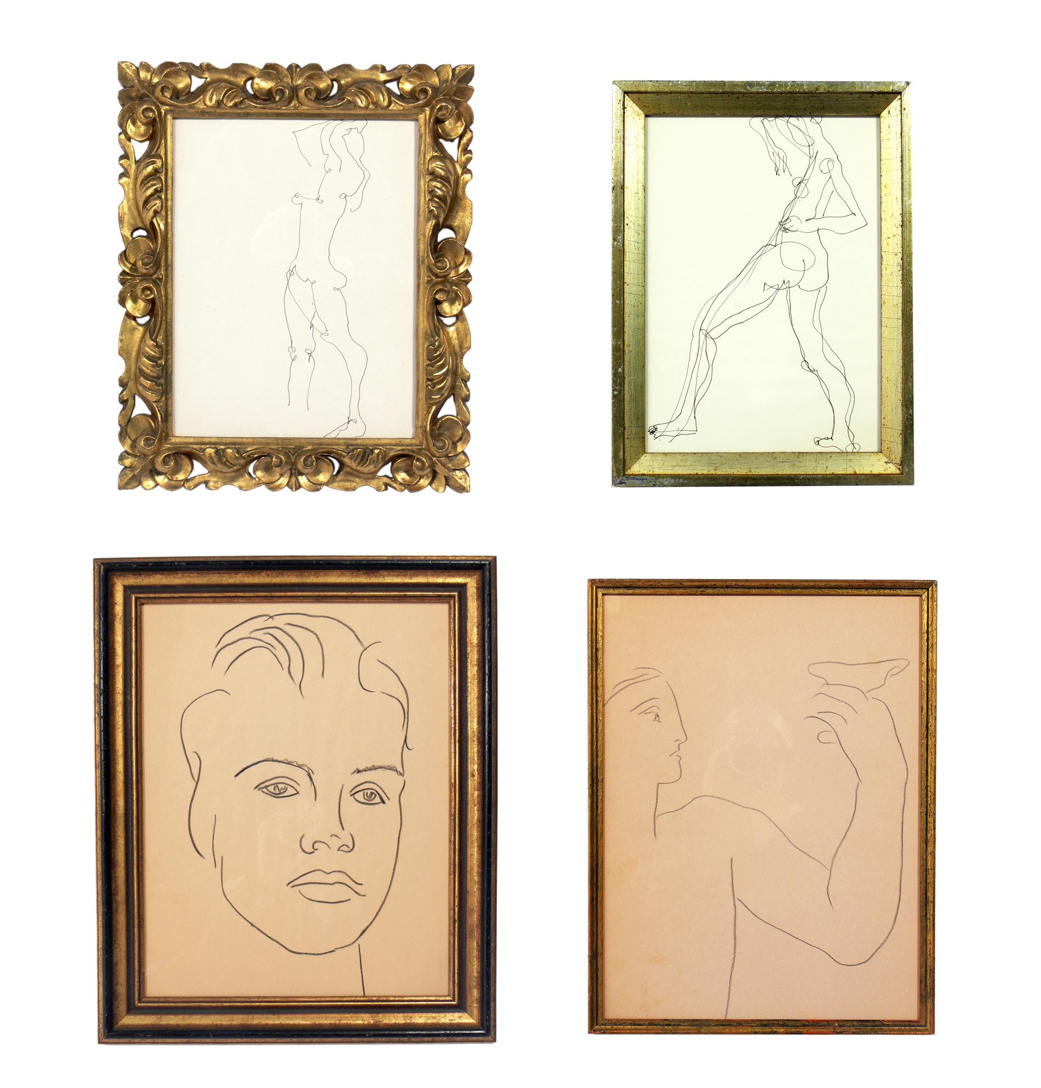 2052x2144 selection of figural drawings in vintage gilt frames for sale