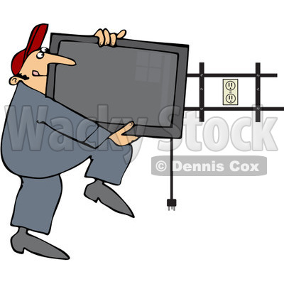 400x400 Free (Rf) Clip Art Illustration Of A Man Installing A Flat Screen