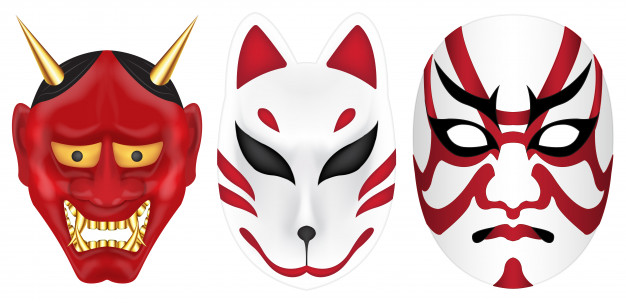 626x303 japan devil fox and kabuki mask set vector premium download