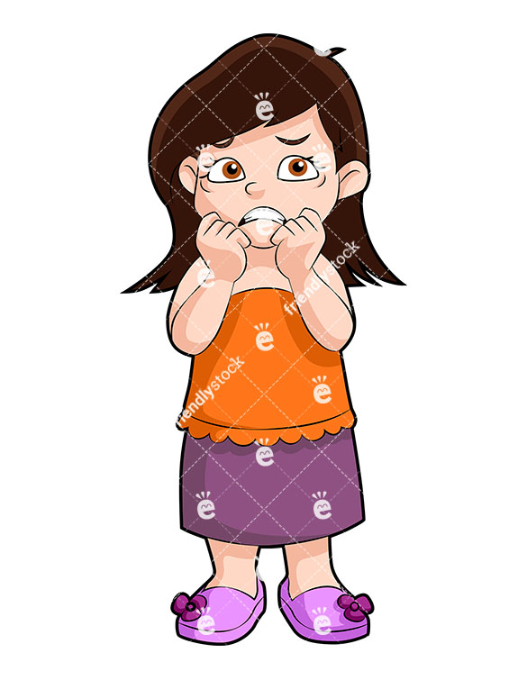 585x755 A Nervous Little Girl Biting Her Nails With Both Hands While