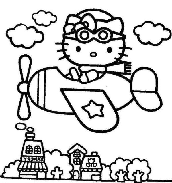 600x641 Hello Kitty Pilot Coloring Page