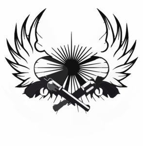 294x300 Royalty Free Winged Revolvers With A Blank Banner Logo By