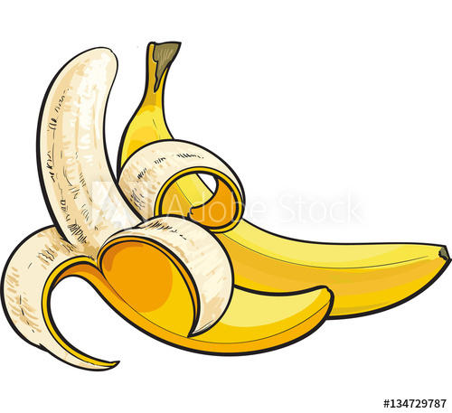 500x457 bananas, one open and unopened, sketch style vector illustration