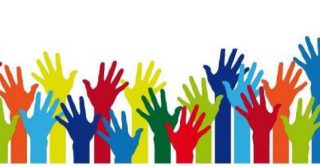 300x294 Volunteering Hands Various Colors Clip Art